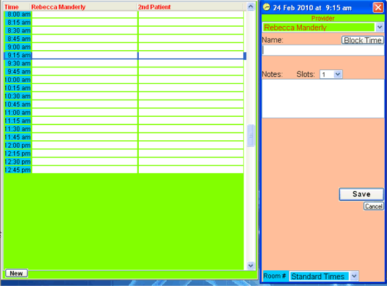 Easily create appointments, and new patients