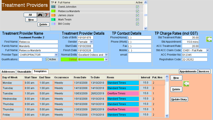 Have multiple providers in your system, each with their own Occupation, Charge Rate and ACC applicability.