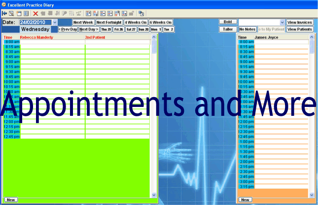 Available for Local Installation, or use our Cloud Computing service to be able to access it anywhere at any time, permitting the use of Apple Macs, iPads and iPhones as well as Android devices. And now you can let your patients book themselves over the internet - check out our easy booking system!